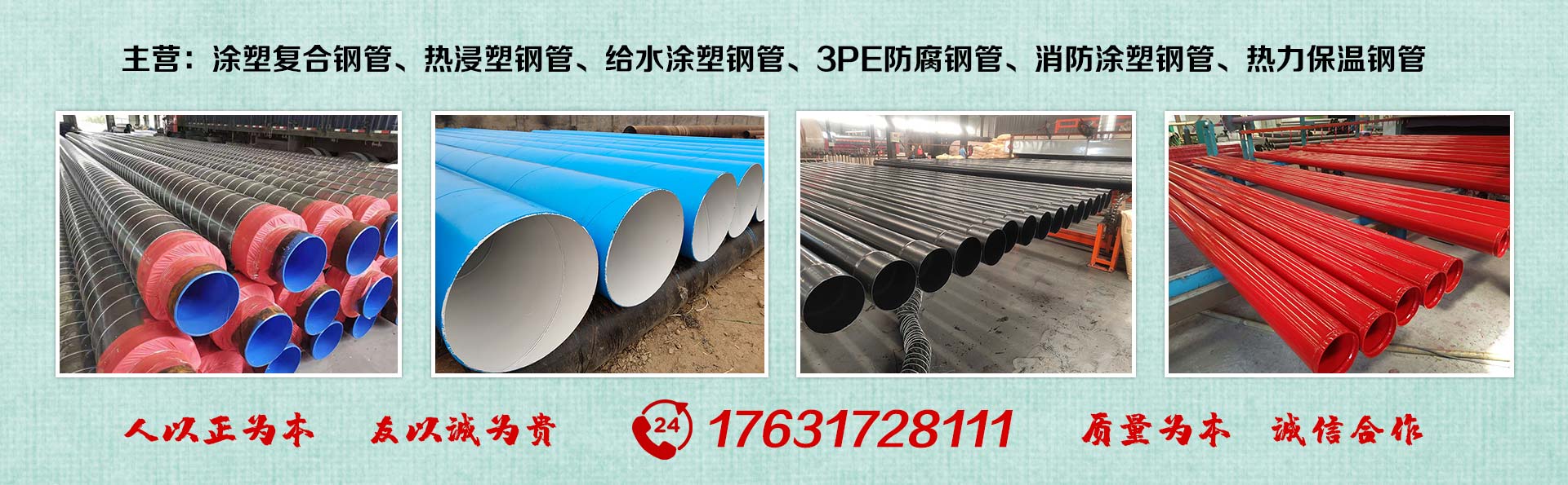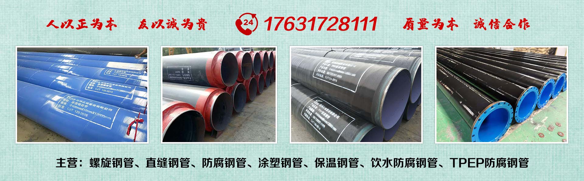 滄州友誠(chéng)管業(yè)有限公司是一家專(zhuān)業(yè)從事生產(chǎn)防腐涂塑管道及管件于一體的大型企業(yè)。公司注冊(cè)資金8600萬(wàn)元,位于中國(guó)管道生產(chǎn)基地—河北鹽山縣,近靠京滬高速、榮烏高速、黃石高速30公里,高鐵滄州西站40公里,天津國(guó)際機(jī)場(chǎng)、濟(jì)南遙墻機(jī)場(chǎng)150公里,為客戶(hù)來(lái)訪及業(yè)務(wù)發(fā)展提供了便利的交通條件。 鋼管系列:螺旋鋼管、無(wú)縫鋼管、ERW直縫焊管、JCOE埋弧焊直縫鋼管、熱鍍鋅鋼管。 涂塑系列:內(nèi)外涂塑鋼管、涂塑復(fù)合鋼…… 了解更多